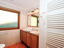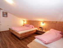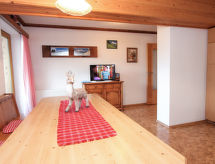 Apartamento de 4 habitaciones 105 m2 en el 2° piso. Espacioso, parcialmente abuhardillado, con mobiliario confortable y agradable: entrada. 1 dorm. con 1 cama y 1 cama doble. Salida al balcón. 2 dorm., cada habitación con 1 cama y 1 cama doble. Grande cocina-comedor (horno, lavavajillas, 4 placas de vitrocerámica, microondas, congelador, cafetera eléctrica, Cápsulas de café (Nespresso) extra) con 1 sofá-cama y TV satélite (pantalla plana). Salida al balcón. Ducha, ducha/WC, WC separado. Balcón grande. Muebles de balcón. Vista panorámica espléndida a las montañas, al valle y al paisaje. El alojamiento dispone de: mosquitera, secador de pelo. Internet (Wifi). A tener en cuenta: detector de humo. Si el número de personas que ocupan la casa vacacional fuera inferior al máximo posible, no todos los dormitorios estarán disponibles.- Instalaciones
