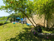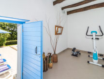 Casa 4 habitaciones 100 m2. Salón con 1 sofá-cama doble y chimenea (sólo con función decorativa), TV satélite y aire acondicionado. Salida a la terraza. 2 dorm., cada habitación con 1 cama de matrimonio (160 cm, 200 cm de longitud), aire acondicionado. 1 dorm. con 1 cama doble y aire acondicionado. Comedor con TV. Cocina (horno, lavavajillas, 1 placas de vitrocerámica, tostadora, hervidor de agua eléctrico, microondas, congelador, cafetera eléctrica). 2 ducha/WC. El alojamiento dispone de: plancha, cuna. Internet (Wifi, gratis). A tener en cuenta: casa para no fumadores.- Instalaciones