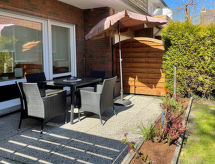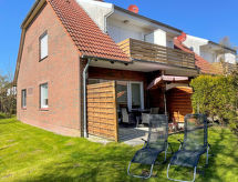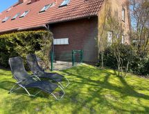 "Meeresrauschen", apartamento de 2 habitaciones 40 m2, en la planta baja. Con mobiliario de buen gusto: salón-comedor 18 m2 con 1 sofá-cama y TV satélite (pantalla plana), radio. Salida a la terraza. 1 dorm. 9 m2 con 1 cama doble (2 x 80 cm, 200 cm de longitud). Rincón-cocina (horno, 4 placas de vitrocerámica, tostadora, hervidor de agua eléctrico, microondas, congelador, cafetera eléctrica). Ducha/WC. Césped. Muebles de terraza, tumbonas (2). El alojamiento dispone de: lavadora, plancha, trona (extra). Internet (Wifi, gratis). A tener en cuenta: apartamento para no fumadores.- Instalaciones