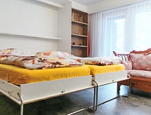 Estudio 35 m2 en el 3° piso, orientación suroeste. Luminoso, con mobiliario de buen gusto y agradable: salón-dormitorio con 2 camas-armario (90 cm, 200 cm de longitud), TV. Salida al balcón. Cocina abierta (horno, 4 placas de vitrocerámica, tostadora, hervidor de agua eléctrico, congelador, cafetera eléctrica, horno Raclette, set de Fondue (queso)) con rincón-comedor. Ducha/WC. Calefacción por el suelo. Balcón, orientación sur y orientación oeste. Muebles de balcón. Vista bonita Matterhorn. El alojamiento dispone de: Internet (Wifi, gratis). A tener en cuenta: apartamento para no fumadores.- Instalaciones