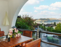 "Apt. 33", apartamento de 2 habitaciones 64 m2 en el 1° piso. Espacioso y luminoso, con mobiliario de estilo: salón-comedor abierto grande con 1 sofá-cama, mesa de comedor, TV cable y canales internacionales (pantalla plana), radio. Salida al balcón. 1 dorm. con 2 camas (90 cm, 200 cm de longitud). Pequeña cocina abierta en la entrada (horno, lavavajillas, 4 placas de vitrocerámica, cafetera eléctrica, Cápsulas de café (Nespresso) extra). Ducha/WC. Calefacción. Balcón. Muebles de balcón, tumbonas (2). Vista panorámica muy bonita al lago, a las montañas y al paisaje. El alojamiento dispone de: trona, cuna hasta 2 años (extra), secador de pelo. Internet (Wifi, gratis). A tener en cuenta: apartamento para no fumadores.- Características del alojamiento