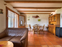 Casa adosada 4 habitaciones 100 m2 en 2 plantas, en planta inferior. Con mobiliario funcional: salón-comedor con chimenea, TV satélite y TV digital. Salida a la terraza. Cocina (horno, lavavajillas, congelador). Ducha/WC. Calefacción eléctrica. Planta superior: 2 dorm. dobles. 1 dorm. doble con aire acondicionado. 2 baño/bidet/WC. Balcón, jardín pequeño. Vista al mar. El alojamiento dispone de: lavadora, trona, cuna, secador de pelo. Internet (Wifi, gratis). Garaje. A tener en cuenta: casa para no fumadores, aparcamiento para coches pequeños. 1 mascota / perro. TV solamente DE, ES. AT-4573-A- Características del alojamiento