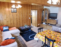 Apartamento de 4 habitaciones 85 m2, en el ático. Con mobiliario confortable y agradable: salón-comedor con TV satélite (pantalla plana), radio y equipo de música. 1 dorm. doble, abuhardillado con 1 cama doble. Salida al balcón, orientación norte. 1 dorm., abuhardillado con 2 camas. 1 dorm., abuhardillado con 1 cama. Cocina abierta (horno, lavavajillas, 4 placas de vitrocerámica) con mesa de comedor. Baño/WC. Calefacción eléctrica, calentador (250 litros). Terraza-jardín. Muebles de terraza. Vista bonita a las montañas, al paisaje y a la localidad. 1 mascota / perro.- Instalaciones