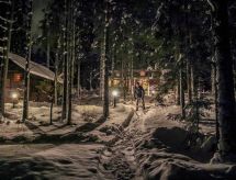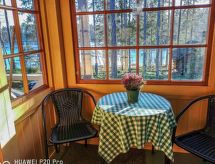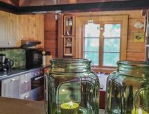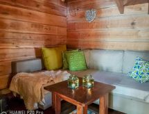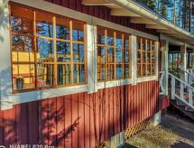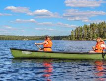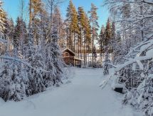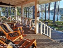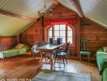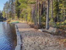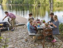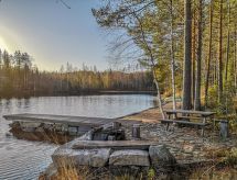 Al oeste de Jyväskylä a 65 km, el lago Sinervä-järvi a 30 m, somero, playa de arena natural suavemente inclinada, muelle, bote y piragua. Villa de madera de 2012 restaurado de un histórico almacén-polvorín, en la planta baja el salón, cocina, lavadero, cuarto de ducha, dormitorio con 2 camas, terraza acristalada y terraza abierta. En la planta superior un dormitorio con una cama doble y una cama, un dormitorio grande con 4 camas. En la planta baja hay una bomba térmica con alimentación de aire y una estufa a leña en la cocina. Sauna independiente a orillas de lago (estufa a leña). Albornoces están incluidos en el precio en invierno. Villa y sauna a orillas de lago ubicadas en una ladera soleada cubierta de pinos. Enfrente de la villa hay un patio con muebles de jardín. En la orilla hay una chimenea y zona para sentarse cerca del muelle. Cerca de buenas pistas de footing y esquí, áreas para la recogida de bayas y setas. El lago es rico en peces y de agua clara. En invierno 7 deslizadores incluidos en el alquiler. Conexión inalámbrica a Internet (fibra óptica). Sendero señalizado del Poeta al lugar de nacimiento de Einari Vuorela. Posibilidad de equitación a 13 km, centro de esquí Laajavuori a 63 km, Keuruu a 19 km, aeropuerto Jyväskylä a 65 km.- Instalaciones