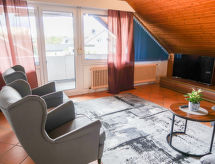 "Natie", apartamento de 3 habitaciones 100 m2, en el ático. Espacioso y luminoso, con mobiliario confortable y moderno: salón grande. 1 dorm. con 1 cama doble. 1 dorm. con 1 cama doble. Abuhardillada, grande cocina (4 fogones, horno, lavavajillas, tostadora, hervidor de agua eléctrico, cafetera eléctrica). Ducha/WC. Balcón grande, orientación sur. Muebles de balcón. Vista bonita.- Instalaciones