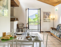 Casa semiadosada "Casa nel Bosco & Casa del Pittore", 300 m s.n. m., rústica, adosada por un lado. En el barrio de Arolo, a 2.3 km del centro de Leggiuno, lugar elevado en una pendiente, a 150 m de un lago, en una calle sin salida, en un bosque. Comunitario: terreno en estado natural con árboles. Acceso estrecho durante 800 m hasta la casa (camino de tierra). Acceso por escaleras hasta la casa. Ancho de la ruta de acceso: 210 cm. Supermercado 9 km, restaurante 2 km, bar 2 km, estación de tren "Sangiano" 2.9 km, playa de piedras 3 km, playa rocosa 130 m (pequeña), playa de césped "Arolo" 1.4 km. Campo de golf (18 hoyos) 13 km. Atracciones en los alrededores: Varese 17 km, Santa Caterina del Sasso 3 km, Angera 15 km. A tener en cuenta: coche recomendable. Acceso a la playa rocosa aprox. a 130 m por un camino forestal empinado, dejado en estado natural.Interior