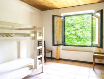 "Casa nel Bosco", casa 4 habitaciones 85 m2 en 2 plantas. Luminoso, con mobiliario funcional y rústico: 1 dorm. doble. Salida al balcón. 1 dorm. con 2 camas. 1 dorm. con 1 x 2 literas. Baño/WC. Ningún tipo de calefacción. Planta superior: salón con TV satélite y estufa. Salida al balcón. Cocina abierta (horno, Estufa de gas, 4 fuegos, microondas, cafetera eléctrica) con mesa de comedor. 2 balcones pequeños, terraza 6 m2. Muebles de terraza. El alojamiento dispone de: trona, cuna hasta 2 años, leña (extra). Plaza de aparcamiento (1 coche) junto a la casa. A tener en cuenta: apartamento para no fumadores. Permitido máximo 1 mascota / perro. CIR:012088-CIM-00001- Instalaciones