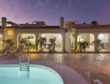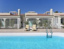 Bungalow, de nueva construcción, moderno, confortable "New Velsuites Playa del Ingles 4", reformado en 2020. Equipamiento de la vivienda: aire acondicionado, solarium, lavadora (privado). Acceso en coche todo el año. Situación: en el centro de Playa del Ingles, lugar céntrico, animado, soleado. Entorno de la vivienda: piscina (comunitario, climatizada).Interior