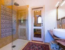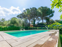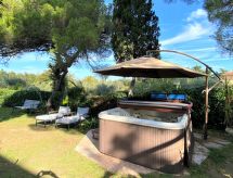 Casa unifamiliar "Ninfea", de 2 plantas, adosada por un lado, rodeada de árboles. En el aldea Antignano, a 5 km del centro de Livorno, a 18 km del centro de Castiglioncello, excelente situación: muy céntrica pero tranquila, a 3 km del mar. Privado: terreno 1'000 m2 (vallada) con césped y árboles, Piscina elevada occulta desde el exterior (7 x 3 m, Disponible por temporada: 01.Abr. - 31.Oct.) con sistema de limpieza por electrolysis de sal. Ducha exterior, piscina de hidromasaje, tenis de mesa, mantenimiento de la piscina a través del propietario/jardinero. En el inmueble: lavadora (uso comunitario). Posibilidad: desayuno (extra). Acceso brusco durante 100 m (camino de tierra). Aparcamiento (para 2 coches). Tienda 1.5 km, supermercado 3 km, centro comercial 8 km, restaurante 1.5 km, estación de tren "Antignano" 1.5 km, playa de gravilla "Antignano" 3 km. Atracciones en los alrededores: Pisa 30 km, Lucca 50 km, Firenze 100 km. El propietario no acepta grupos de adolescentes/jóvenes. A tener en cuenta: El propietario vive en una parte independiente de la casa. El propietario tiene un perro.Interior
