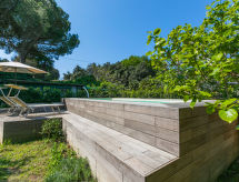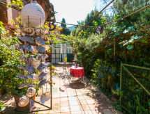 Casa pareada 5 habitaciones 180 m2 en 2 plantas. Con mobiliario confortable y de buen gusto: salón-dormitorio con 1 sofá-cama doble. Salida al jardín. Grande cocina (horno, lavavajillas, Estufa de gas, 4 fuegos, tostadora, hervidor de agua eléctrico, microondas, congelador, cafetera eléctrica) con mesa de comedor, chimenea y TV. WC separado. Calefacción de leña. Planta superior: 1 dorm. doble con 1 cama doble (170 cm), aire acondicionado. 1 dorm. con 2 camas y aire acondicionado. 1 dorm. doble con 1 cama doble (160 cm), aire acondicionado. 2 ducha/bidet/WC. Terraza-jardín grande parcialmente cubierta, cenador. Muebles de terraza, tumbonas. El alojamiento dispone de: plancha, trona, cuna, secador de pelo. Internet (Wifi, gratis). Permitido máximo 1 mascota / perro.- Instalaciones