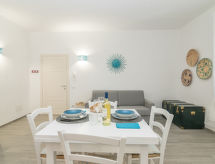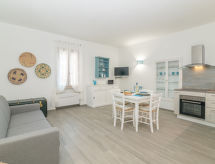 "Pavoncella", apartamento de 2 habitaciones 40 m2 en el 1° piso. Con mobiliario confortable y agradable: salón-comedor con 1 sofá-cama doble, TV y pantalla plana. 1 dorm. doble. Rincón-cocina (horno, 4 Placas de inducción, tostadora, microondas). Ducha/bidet/WC. Aire acondicionado. El alojamiento dispone de: lavadora, secador de pelo. Internet (Wifi, gratis). IUN:Q5449- Instalaciones