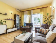Casa 7 habitaciones 200 m2 en 2 plantas. Salón-comedor con TV satélite y aire acondicionado. Salida al balcón acristalado. 2 dorm., cada habitación con 1 cama doble. 1 dorm. con 1 cama. Cocina abierta (4 fogones, horno, lavavajillas, microondas, congelador) con chimenea. Ducha/WC, WC separado. Planta superior: (escalera exterior) salón-comedor abuhardillado con TV satélite y aire acondicionado. Salida al balcón. 1 dorm., abuhardillado con 1 cama de matrimonio (180 cm). 1 dorm., abuhardillado con 2 camas. Abuhardillada, cocina abierta (4 fogones, microondas, cafetera eléctrica). Salida al balcón, a la terraza. Baño/WC con bañera esquinera. Balcón, terraza cubierta. Muebles de terraza, tumbonas. El alojamiento dispone de: cuna (extra). Internet (Wifi, gratis). A tener en cuenta: casa para no fumadores. Permitido máximo 2 mascotas / perros. En la planta baja: konoba con la mesa de comedor y chimenea abierta.- Características del alojamiento
