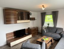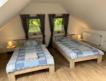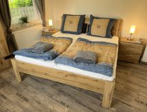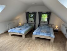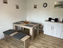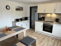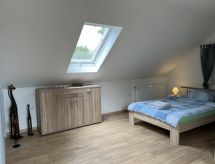 Apartamento de 3 habitaciones 95 m2 en 2 plantas, en la planta baja. Con mobiliario bonito y de buen gusto: salón con TV satélite (pantalla plana). 1 dorm. con 1 cama doble (2 x 90 cm, 200 cm de longitud). Cocina (horno, lavavajillas, 4 placas de vitrocerámica, tostadora, hervidor de agua eléctrico, microondas, cafetera eléctrica) con mesa de comedor, radio. Ducha/WC. Planta superior: 1 dorm., abuhardillado, abierto con 2 camas (100 cm, 200 cm de longitud). Terraza. Muebles de terraza, barbacoa (portátil). El alojamiento dispone de: Internet (Wifi, gratis). A tener en cuenta: apartamento para no fumadores. Detector de humo.- Instalaciones