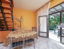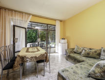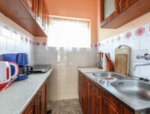 Fonyód: Casa semiadosada sencilla. A 600 m de un lago, en una calle sin salida, en el campo. Comunitario: jardín 500 m2 (vallado). En el inmueble: Wifi. Tienda de comestibles 600 m, supermercado 2 km, restaurante 300 m, parada de autobús 200 m, estación de tren, playa de césped 600 m. A tener en cuenta: En este inmueble hay más apartamentos disponibles para reservar. La propiedad con ref: HU8640.600.1 está situada en la misma parcela.Interior