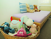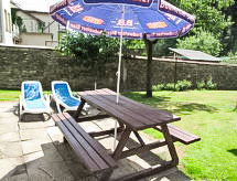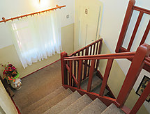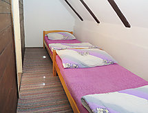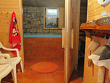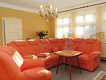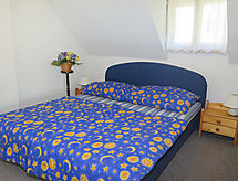 Apartamento de 4 habitaciones 80 m2 en el 1° piso. Parcialmente abuhardillado, con mobiliario sencillo: salón-comedor con TV satélite, radio y CD. 2 dorm., abuhardillados pequeños, cada habitación con 2 camas. 1 dorm. con 1 cama doble. Cocina (4 fogones, horno, hervidor de agua eléctrico, microondas, congelador, cafetera eléctrica). Ducha, WC separado. En planta inferior: ducha, WC separado. Al área de bienestar con piscina y sauna (extra, bajo petición) en la planta inferior se puede entrar por el jardín y está disponible solo para los clientes.- Instalaciones