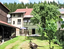 Plavy, a 4 km de Tanvald: Casa de dos viviendas "Plavy", antigua, amplia de 2 plantas del año 1950, reformada en 2000. En la localidad, a 15 m de un bosque, a 15 m del riachuelo. Comunitario: jardín 200 m2 (vallado) con plantas. Lugar para hoguera. Privado: jardín 100 m2 (vallado), piscina cubierta (5 x 4 m, 140 cm de profundidad, extra). Tenis de mesa, porche, muebles de jardín, barbacoa, lugar para hoguera. En el inmueble: sauna (extra). Calefacción central. Aparcamiento en el mismo terreno. Tienda 2 km, tienda de comestibles 300 m, restaurante 400 m, parada de autobús 300 m, estación de tren "Plavy" 500 m, piscina 10 km, piscina cubierta 10 km. Campo de golf 6 km, tenis 2 km, telesquí 300 m, remontes 15 km, pistas de esquí 15 km, escuela de esquí 15 km, escuela de esquí para niños 15 km, pista de esquí de fondo 3 km. A tener en cuenta: el propietario vive en el mismo inmueble. Piscina (extra: 350 CZK/h, bajo petición) no estándar, está encima del suelo, climatización de la piscina (extra: 200 CZK/h, bajo petición), sauna (extra: 350 CZK/h), parte de la zona de bienestar.Interior