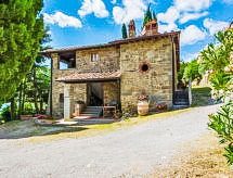 A 3 km de Loro Ciuffenna: Típica casa de labranza en piedra toscana, en espléndida situación panorámica, rodeada de viñedos y oliveras de la propiedad, cuyos productos estan a la venta alli mismo. La piscina está situada en medio de una zona verde. Ideal para los que buscan un relax absoluto, pero también para los que gusten de hacer visitas culturales a las ciudades del arte más importantes de la toscana, todos de fácil acceso. La casa, perfectamente reestructurada, transmite la atmósfera de otros tiempos. Horno para pizza. Casa rural "Le Coste", muy antigua, bonita, rústica de 2 plantas, del siglo 17°, rodeada de árboles y prados. A 7 km del centro de Montevarchi, a 30 km del centro de Arezzo, a 50 km del centro de Firenze, lugar aislado, tranquilo en una colina, en el campo. Comunitario: terreno 6 ha (vallado). Privado: jardín, piscina vallada (12 x 6 m, 100 - 150 cm de profundidad, Disponible por temporada: 30.Abr. - 01.Oct.). Terraza, muebles de jardín, barbacoa. En el inmueble: acceso a internet, Wifi (extra). Calefacción central, lavadora, calefacción disponible desde el 15.10. al 15.04.. Posibilidad de ayuda doméstica (extra). Aparcamiento junto a la casa. Tienda 3 km, tienda de comestibles 3 km, restaurante 3 km, estación de tren "Montevarchi" 10 km. Tenis 15 km, centro ecuestre 15 km.Interior