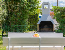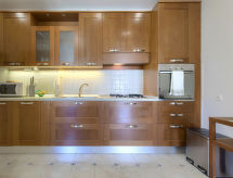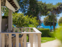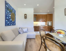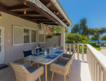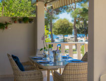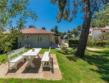 Casa pareada 3 habitaciones 55 m2. Salón-comedor con TV satélite (pantalla plana), aire acondicionado. Salida a la terraza. 1 dorm. con 1 cama de matrimonio (160 cm, 200 cm de longitud). 1 dorm. con 1 cama de matrimonio (160 cm, 200 cm de longitud). Salida a la terraza. Cocina abierta (horno, 4 fuegos, hervidor de agua eléctrico, microondas, cafetera eléctrica). Ducha/WC. Terraza 15 m2. Muebles de terraza, tumbonas. Vista parcial al mar. El alojamiento dispone de: Internet (Wifi, gratis). 1 mascota pequeña / perro.- Instalaciones
