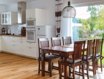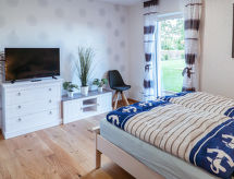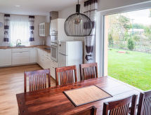 Casa unifamiliar "Pusteblume", amplia del año 2020. En el barrio de Hessenburg, a 11 km del centro de Ribnitz-Damgarten, lugar tranquilo, a 15 km de la playa. Privado: terreno 1'700 m2 (vallada), jardín, cuidado con césped, aparcamiento en el mismo terreno. Supermercado 8 km, restaurante 8 km, playa de arena "Zingst" 15 km, playa de césped "Saal" 3 km. Escuela de surf 4 km. Atracciones en los alrededores: Boddentherme 11 km, Vogelpark 16 km, Bernsteinmuseum 9 km, Karls Erlebnishof 30 km, Hansestadt Rostock 40 km. El propietario no acepta grupos de adolescentes/jóvenes. Vecindario muy sensible a ruidos. Se ruega respetar la tranquilidad y normas de buen comportamiento.Interior