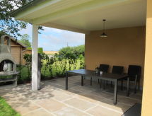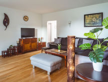 Casa 4 habitaciones 125 m2. Con mobiliario moderno y de buen gusto: salón-comedor grande con mesa de comedor y TV satélite (pantalla plana). Salida a la terraza. 1 dorm. con 1 cama doble y TV satélite (pantalla plana). 1 dorm. con 2 camas y TV satélite (pantalla plana). 1 dorm. con 1 cama, 1 cama-nido y TV satélite (pantalla plana). Rincón-cocina (horno, lavavajillas, 4 placas de vitrocerámica, tostadora, hervidor de agua eléctrico, microondas, congelador, cafetera eléctrica). Ducha/WC, WC separado, doble lavabo. Calefacción. Terraza 16 m2, cubierta. Muebles de terraza, barbacoa, tumbonas (2). El alojamiento dispone de: trona, cuna. Internet (Wifi, gratis). A tener en cuenta: casa para no fumadores. Detector de humo, extintores.- Instalaciones