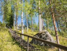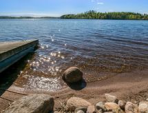 Permitido máximo 2 mascotas / perros. 20 km al norte de Imatra, el lago Saimaa/Haapavesi a 80 m, fondo duro de arena, gradualmente profundizando, muelle y bote de remos de uso compartido. Apartamento en casa adosada (construida en 1990), salón con sofá-cama para dos personas, cocina pequeña (renovada en 2012), baño con WC y ducha, sauna eléctrica, terraza acristalada. Tres camas en la buhardilla, escalera empinada a la buhardilla. También, la sauna a orillas de lago con estufa eléctrica de sauna en alquiler. La sauna está a 120 m de distancia y el precio es 25 euros / 2 horas. La sauna será calentada con antelación. La sauna a orillas de lago se puede reservar en el terreno del propietario, se paga en efectivo. Ropa de cama y limpieza final están incluidas en el precio. Tarifa de mascota es 25 euros. Rantalinna 3 es un apartamento pequeño en casa adosada, base perfecta para las personas que explorarán las atracciones de la zona. La terraza acristalada ofrece unas vistas maravillosas al lago por la altura variada del terreno. La playa está a 80 m de distancia, la escalera larga lleva a la playa, no es adecuada para las personas con movilidad reducida. En esta casa adosada hay cinco apartamentos en total. El mismo propietario también tiene el apartamento vecino, destino 14951. Ruokolahti a 4,5 km, centro de esquí Ruokolahti Freeski a 10 km, Imatra a 20 km, Puumala a 46 km, Punkaharju a 73 km, Savonlinna a 101 km, Mikkeli a 116 km, Helsinki a 279 km.- Instalaciones