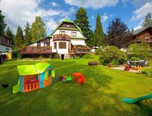 Casa de apartamentos agradable de 3 plantas. En la localidad, a 200 m del centro de Harrachov, lugar elevado, a 600 m de las pistas de esquì. A 500 m del río. Comunitario: terreno, jardín. Muebles de jardín, barbacoa, lugar para hoguera, parque infantil (tobogán, columpio, cajón de arena). En el inmueble: calefacción central. Desayuno (extra). Trastero a disposición. Aparcamiento junto a la casa. Tienda de comestibles, restaurante 300 m, café 500 m, alquiler de bicicletas 300 m, parada de autobús "Harrachov, aut.nádr." 500 m, estación de tren "Harrachov" 4 km, piscina 1 km. Campo de golf 3.5 km, tenis 1 km, telesquí, telesilla, pistas de esquí, alquiler de esquís, escuela de esquí 600 m, pista de esquí de fondo 200 m. Atracciones en los alrededores: Skokanské můstky Harrachov 1 km, Mumlavský vodopád 1 km, Bobová dráha, Muzeum skla 2 km, Vosecká bouda, Dvořačky 9 km, Huťský vodopád 9 km, Vodopád Kamienczyka, Szklarki (PL) 12 km. Zonas de esquí populares fácilmente accesibles: Čertova hora 600 m, Zákoutí 600 m, Ryžoviště 1.4 km, Kořenov 7 km, Rokytnice nad Jizerou 15 km. Lagos conocidos fácilmente accesibles: Vodní nádrž Souš 15 km.Interior