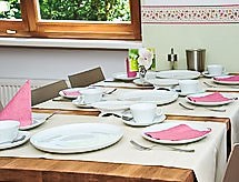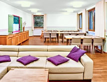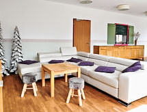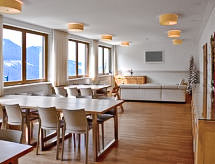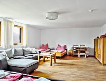 Casa 12 habitaciones 430 m2 en 3 plantas. Con mobiliario confortable y de buen gusto: sala de juegos. Sala de billar. Sala para equipaje. 4 duchas. Planta superior: comedor grande con TV satélite (pantalla plana). Grande cocina (5 fogones, horno, lavavajillas, microondas) con pasa-platos. 4 WC separados. Planta superior 2: 4 dorm. dobles. 1 dorm. con 3 camas y TV satélite. 3 dorm., cada habitación con 2 camas y TV satélite. 2 WC separados. Mobiliario confortable de estilo rural. Vista panorámica a las montañas y al paisaje. El alojamiento dispone de: cuna (extra). Internet (Wifi, gratis). A tener en cuenta: 2 mascotas / perros. Detector de humo. Es lo más adecuado para las familias grandes. Ojo: El ático adicional se puede reservar para 8 personas máximo directamente en plaza. Precio bajo petición.- Instalaciones