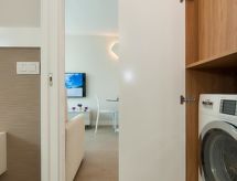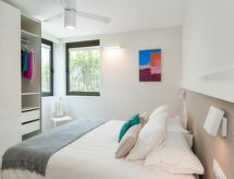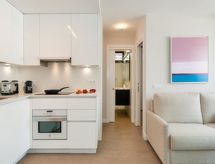 Apartamento de "Siesta21", 2 piezas para 2 personas, 45 m2 en el 2° piso, con mobiliario sencillo y confortable. Salón-comedor con TV satélite, DVD y rincón comedor. Fumar no permitido. Internet (Wifi). 1 sofá-cama. Dormitorio con 1 cama doble. Rincón-cocina con 3 quemadores, microondas, horno, rincón comedor, lavavajillas, frigorifico y congelador. Ducha/WC. Terraza. Otros equipamientos: caja fuerte, trona, secador de pelo, plancha, lavadora, secadora. 1387- Características del alojamiento