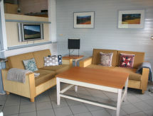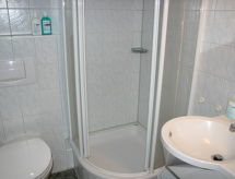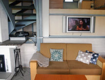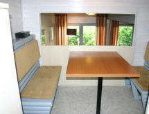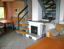 "Dorf 3/Haus 99", casa 4 habitaciones 75 m2 en 2 plantas, en la planta baja. Con mobiliario agradable y con mucha madera: salón-comedor 22 m2 con TV satélite (pantalla plana), estufa de lena y aire acondicionado. Salida a la terraza, a la terraza-jardín. 1 dorm. 12 m2 con 2 camas (90 cm, 200 cm de longitud). Cocina abierta 8 m2 (4 placas de vitrocerámica, microondas, cafetera eléctrica, horno Raclette). Ducha/WC, WC separado. Planta superior: (escalera de caracol) 2 dorm. 10 m2, abuhardillados, cada habitación con 2 camas (90 cm, 200 cm de longitud), lavabo. Salida al balcón. Calefacción eléctrica. Balcón pequeño 5 m2, terraza grande 20 m2 parcialmente cubierta, terraza-jardín, césped 200 m2. Muebles de terraza, muebles de balcón, barbacoa, tumbonas (2). Vista bonita al lago y al bosque. El alojamiento dispone de: caja fuerte, trona, secador de pelo, leña (extra), cómoda con cambiador para bebés. A tener en cuenta: casa para no fumadores. Permitido máximo 2 mascotas / perros. Detector de humo, extintores.- Instalaciones
