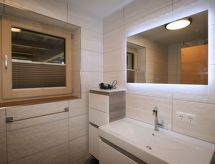 "S'platzl", apartamento de 3 habitaciones en el 1° piso. Con mobiliario muy de buen gusto: entrada. 1 dorm. doble con 1 x 2 literas, ducha/WC. 1 dorm. doble con ducha/WC. Cocina abierta (horno, lavavajillas, 4 placas de vitrocerámica, tostadora, hervidor de agua eléctrico, microondas, congelador, cafetera eléctrica) con 1 sofá-cama, mesa de comedor y TV (pantalla plana). Salida al balcón. Calefacción por suelo. Muebles de balcón. Vista panorámica espléndida a las montañas y a la localidad. El alojamiento dispone de: caja fuerte, secador de pelo. Internet (Wifi). Estación de carga eléctrica. A tener en cuenta: apartamento para no fumadores.- Instalaciones