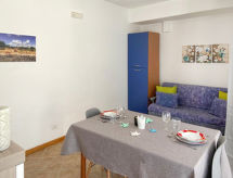 "Sole", apartamento de 2 habitaciones 40 m2 en el 1° piso. Con mobiliario funcional y confortable: salón-comedor con 1 sofá-cama doble y TV (pantalla plana), aire acondicionado. 1 dorm. doble con ventilador. Rincón-cocina (4 fogones, horno, congelador). Ducha/bidet/WC. El alojamiento dispone de: lavadora, plancha, cuna hasta 2 años (extra), secador de pelo. Internet (Wifi, gratis). Permitido máximo 1 mascota / perro. CIR:19088010B402156- Instalaciones