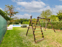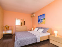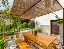 Casa 5 habitaciones 165 m2 en 2 plantas. 1 dorm. con 1 cama, 1 cama doble y TV. Baño/WC con bañera esquinera. Planta superior: (escalera exterior) salón-comedor con TV satélite (pantalla plana), aire acondicionado. Salida al balcón, a la terraza. 1 dorm. con 1 cama y 1 cama de matrimonio (160 cm, 200 cm de longitud). 1 dorm. con 2 camas. 1 dorm. con 1 cama doble. Cocina abierta (4 fogones, horno, lavavajillas, microondas, cafetera eléctrica). Ducha/WC. Balcón, terraza. Muebles de terraza. El alojamiento dispone de: plancha, trona, cuna. A tener en cuenta: casa para no fumadores. Permitido máximo 1 mascota / perro.- Características del alojamiento