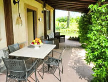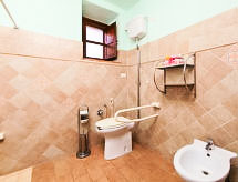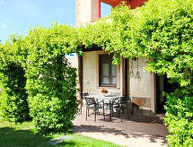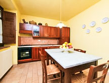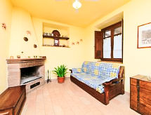 "Stucchio", apartamento de 2 habitaciones 65 m2, en la planta baja. Con mobiliario confortable y rústico: salón-comedor con 1 sofá-cama doble, chimenea y TV. Salida al balcón acristalado. 1 dorm. doble. Rincón-cocina (4 fogones, horno, grill). Ducha/bidet/WC. Calefacción de gas (extra). Calefacción disponible desde el 01.11. al 15.04. El alojamiento dispone de: mosquitera, secador de pelo. Internet (Wifi). 1 mascota / perro. La veranda está amueblada y es 30 m2. Las camas extras están en el salón.- Instalaciones