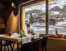 Resort "SWISSPEAK Resorts Zinal", idóneo para niños, moderno, bonito del año 2018. 6 casas en el complejo. 93 apartamentos en la residencia. En el centro de Zinal, lugar tranquilo, a 300 m de las pistas de esquì. A 30 m del río. En el complejo: recepción, restaurante, bar, sala de descanso, Wifi, sala de juegos, ascensor, sala para guardar bicicleta, sala guardaesquís, calefacción central. Cambio de sábanas (suplemento extra). Acceso hasta la casa. En invierno las cadenas de nieve son necesarias. Aparcamiento (número limitado, extra), posibilidad de aparcamiento 300 m. Tienda de comestibles 200 m, restaurante 150 m, bar 300 m, panadería 200 m, parada de autobús "Zinal Centre" 300 m, piscina 12 km, piscina cubierta 600 m. Campo de golf (18 hoyos) 35 km, tenis 8 km, minigolf 650 m, rutas de senderismo desde la casa 100 m, caminos para bicicletas, teleférico, remontes, alquiler de esquís, escuela de esquí, escuela de esquí para niños 300 m, pista de trineo, pista de esquí de fondo 150 m. Atracciones en los alrededores: Indoor Park Grimentz 8 km, Moulin de St-Luc 12 km, Barrage de Moiry 17 km, Observatoire François-Xavier Bagnoud 18 km. Zonas de esquí populares fácilmente accesibles: Grimentz-Zinal 300 m, St-Luc 14 km, Crans-Montana 40 km. Zona de senderismo Zinal 300 m, Grimentz 8 km, Vallon de Réchy 20 km. A tener en cuenta: adecuado para familias. En caso de buenas condiciones de nieve, posible acceso a la casa con esquís. Carga y descarga de equipaje posible en la casa de vacaciones. La foto es sólo un ejemplo de una vivienda tipo. La residencia tiene un número limitado de garajes y plazas de aparcamiento al aire libre. El garaje no está vigilado y no tiene puerta. Otros espacios públicos de aparcamiento están a unos minutos andando del complejo.Interior