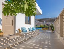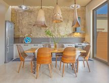 "Terra Azzurro", villa 3 habitaciones 120 m2. Espacioso y luminoso, con mobiliario confortable y bonito: salón abierto pequeño. Salida al jardín, a la piscina. 2 dorm. dobles, cada habitación con 1 cama doble, ducha/WC y TV satélite (pantalla plana). Salida al jardín. Cocina abierta (horno, 4 placas de vitrocerámica, tostadora, hervidor de agua eléctrico, microondas) con mesa de comedor. Aire acondicionado. Terraza grande parcialmente cubierta. Barbacoa. Vista bonita al paisaje. El alojamiento dispone de: lavadora, caja fuerte, secador de pelo. Internet (Wifi, gratis). 1234781- Instalaciones