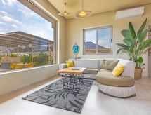 Villa "Terra Azzurro", bonita, confortable, individual. En el barrio de Kolymbia, lugar tranquilo, soleado, a 1 km del mar, a 1 km de la playa. Privado: jardín bonito, cuidado con flores y árboles, terreno con hierba, piscina rectangular (40 m2, Disponible por temporada: 01.Abr. - 30.Nov.). Ducha exterior, barbacoa, aparcamiento junto a la casa. Tienda de comestibles, supermercado, restaurante, bar, panadería, café 500 m, playa de gravilla "Kolymbia" 1 km. Campo de golf (18 hoyos) 9 km, centro ecuestre 14.6 km. Atracciones en los alrededores: Valley of the Butterflies 22 km, Lindos Acropolis 26.8 km, Asklipio Castle 39.5 km, Palace of the Grand Master of Knights 27.5 km, Medieval City of Rhodes 26.5 km, Waterpark Rhodes 16.9 km. A tener en cuenta: coche recomendable. Adecuado para familias, equipamiento para bebés a demanda (incluido), no adecuado para niños más pequeños de 18 años. Grupos de jóvenes sólo bajo petición.Interior