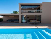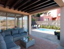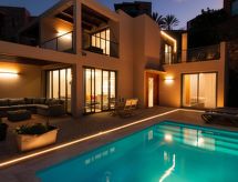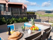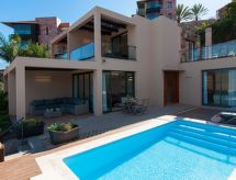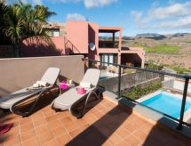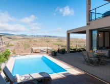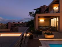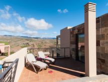 Villa, bonita, moderna "Terrazas 14 Salobre Golf" en 2017. Equipamiento de la vivienda: aire acondicionado. Parking: plaza de parking reservada. Acceso en coche todo el año. Situación: en las afueras de Maspalomas, lugar aislado en el campo. Vista desde la vivienda a las montañas. Entorno de la vivienda: terreno (privado), jardín (privado), piscina (privado, climatizada). Calefacción de la piscina (extra) 40.00 al día a pagar al llegar. Es obligatorio solicitarla en el momento de la reserva.Interior