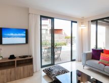"Terrazas 14", casa 3 piezas para 4 personas, 80 m2 en 2 plantas, con mobiliario sencillo y confortable. Salón-comedor con TV regional, TV satélite y DVD. Fumar no permitido. Internet (Wifi). Dormitorio con 2 camas individuales. Dormitorio con 2 camas individuales. Cocina con 4 quemadores, microondas, horno, mesa de comedor, lavavajillas, frigorifico y congelador. Baño y baño/ducha/WC. Terraza, muebles de terraza, 4 tumbonas. Otros equipamientos: caja fuerte, trona, secador de pelo, plancha, lavadora, secadora. Wi-Fi (extra: 6€/día), a pagar en plaza. 2017/4185- Características del alojamiento