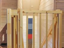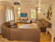 110 km al norte de Rovaniemi, en el área Perhe-Luosto, el centro de Luosto está a 10 km de distancia. Villa de troncos, construida en 2013, en dos plantas, en la planta el salón-cocina grande, 2 dormitorios, uno con 2 camas y otro con litera y cama individual, sauna, baño, vestidor, WC separado y un recibidor calentado grande. En la planta superior hay 4 dormitorios, todos con 2 literas, salón con 1 cama individual, 2 aseos, uno con ducha. En la villa hay 3 duchas y 4 aseos. Además, videoproyector y pantalla, Internet inalámbrico de alta velocidad, calefacción por suelo en toda la planta baja, 2 TV (uno en el salón de la planta superior), dos frigoríficos grandes y dos armarios de secado. Villa espaciosa cerca del Parque Nacional Pyhä-Luosto (a 600 m). Gracias a sus instalaciones y equipo, también es muy adecuada para reuniones. El propietario alquila la sauna finlandesa. Posibilidad de natación en invierno. Las pistas de esquí principales de Luosto están a 8 km de distancia. Sendero de esquí de conexión a los senderos de esquí de fondo de Luosto (150 km largos) a 200 m de la cabaña, abren en la semana 7 cuando lo permiten las condiciones meteorológicas. Hasta entonces, el sendero de esquí más cercano está a 4 km de distancia. Pista de esquí pequeña apta para familias en Luosto está 100 m. El telesquí dejará de operar. Mina de amatistas a 15 km, Sodankylä a 35 km, Pyhätunturi a unos 35 km.- Instalaciones