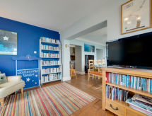 4 habitaciones casa de campo en 2 plantas. Espacioso y luminoso, con mobiliario confortable y de buen gusto: salón abierto con TV, pantalla plana y DVD. Salón con TV (pantalla plana), radio, CD, equipo de música y DVD. Cocina abierta (4 fogones, horno, lavavajillas, microondas, congelador, cafetera eléctrica) con mesa de comedor. WC separado. Calefacción. Planta superior: 1 dorm. doble con 1 cama doble y ducha/WC. 1 dorm. doble con 1 cama doble. Salida al balcón. 1 dorm. con 2 camas. 1 dorm. para niños con 1 x 2 literas, TV (pantalla plana). Baño/ducha/WC. Calefacción. Muebles de terraza, barbacoa. Vista bonita al mar y al mar. El alojamiento dispone de: lavadora, secadora. Internet (Wifi, gratis). A tener en cuenta: casa para no fumadores.- Instalaciones