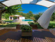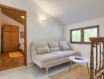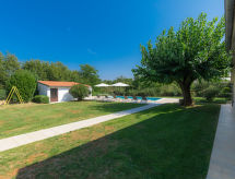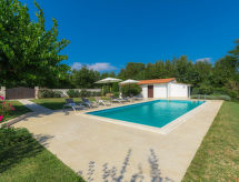 Casa semiadosada "Tijan (ROJ411)", de 2 plantas. En el aldea Tomišići, a 3.5 km del centro de Žminj, a 21 km del centro de Rovinj, a 21 km del mar. Privado: terreno 800 m2 (vallada) con césped y árboles, piscina rectangular (10 x 5 m, 130 cm de profundidad, Disponible por temporada: 14.May. - 24.Sep.). Ducha exterior, tenis de mesa, terraza, barbacoa (columpio). En el inmueble: acceso a internet, aire acondicionado, lavadora. Aparcamiento (para 3 coches) en el mismo terreno. Tienda 3.5 km, restaurante 3.5 km, playa rocosa 21 km. A tener en cuenta: aeropuerto 35 km de la casa.Interior