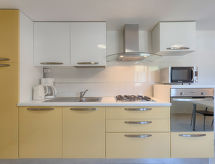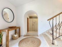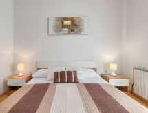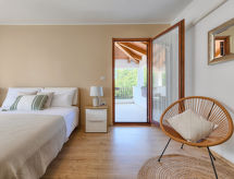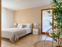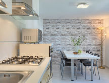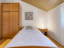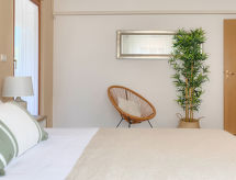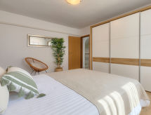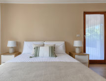 Casa pareada 4 habitaciones 120 m2 en 2 plantas. Cocina (horno, lavavajillas, 4 fuegos, tostadora, hervidor de agua eléctrico, microondas, congelador, cafetera eléctrica) con mesa de comedor. Ducha/WC. Planta superior: entrada con aire acondicionado. 1 dorm. con 1 cama de matrimonio. Salida a la terraza. 2 dorm., cada habitación con 1 cama de matrimonio. 1 dorm., abuhardillado con 1 cama. Baño/WC. Terraza 20 m2 parcialmente cubierta terraza cubierta. Muebles de terraza, tumbonas, trastero. El alojamiento dispone de: plancha, cuna. Internet (Wifi, gratis). Permitido máximo 2 mascotas pequeñas / perros. Sala de boxeo es accesible solo desde fuera.- Características del alojamiento