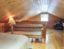 110 km al norte de Rovaniemi, sin posibilidades de natación o pesca. Cabaña de troncos de 2001, espacio habitable 75 m², comedor-cocina, dormitorio cama doble (140 cm ancha), dormitorio sofá convertible, buhardilla para dormir (techos inclinados, el punto más alto 175 cm) cama doble, dos camas 120 cm anchas y un sofá, baño, vestidor, sauna, porche abierto. Cómodo chalé en medio de un bosque viejo, en una ubicación muy tranquila. Depósito para esquís se cierra con llave. En el chalé hay una bomba térmica con alimentación de aire. Cerca del Parque Nacional Pyhä-Luosto, a 500 m de distancia. Pistas principales de esquí en Luosto a 8 km de distancia. Sendero de esquí de conexión (a 50 m de distancia) lleva al sendero de esquí oficial, abierto cada año en la semana n. 7, si las condiciones de nieve son buenas. Hasta entonces el sendero de esquí más cercano está a 4 km de distancia. Mina de amatista a 15 km, Sodankylä a 35 km, Pyhätunturi aprox. a 35 km.- Instalaciones