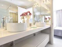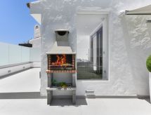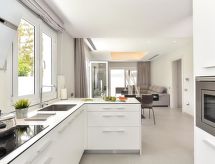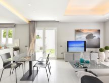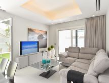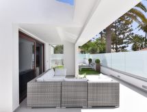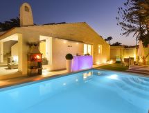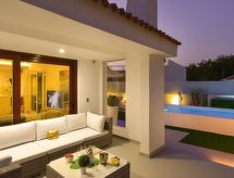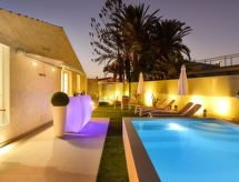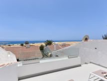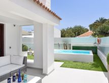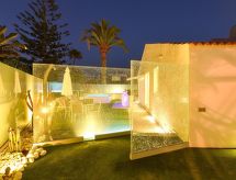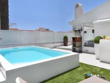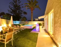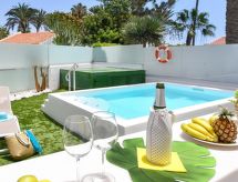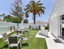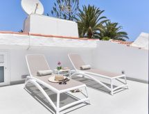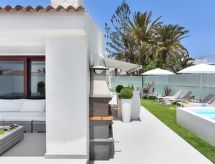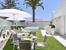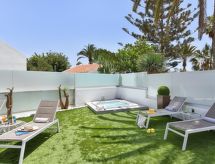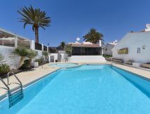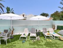 Bungalow, moderno, confortable "Villa Rina MC". Equipamiento de la vivienda: aire acondicionado, solarium, lavadora (privado). Acceso en coche todo el año. Situación: en el centro de Playa del Ingles, en un barrio residencial. Vista desde la vivienda al mar. Entorno de la vivienda: piscina (privado), ducha exterior (privado), barbacoa (privado). Las llegadas en los siguientes horarios deberán abonar un coste extra en plaza: 20:30-22:00: 30€, 22:00-00:00: 50€, 00:00-01:30: 80€.Interior