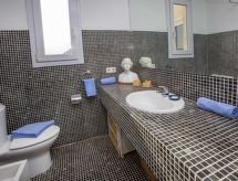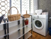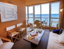"Torre del Castillo", apartamento de 3 habitaciones 100 m2 en el 12° piso. Espacioso, con mobiliario de estilo y agradable: salón-comedor con TV digital, aire acondicionado y bomba de calor, caliente. 1 dorm. con 2 camas (90 cm, 190 cm de longitud), ducha/WC y ventilador. 1 dorm. con 2 camas (90 cm, 190 cm de longitud), aire acondicionado y bomba de calor, caliente. Cocina (horno, lavavajillas, 4 placas de vitrocerámica, microondas, congelador, cafetera eléctrica). Ducha/WC. Vista panorámica espléndida al mar y a las montañas. El alojamiento dispone de: lavadora, plancha, secador de pelo. Plaza de aparcamiento. A tener en cuenta: TV solamente ES. R000000001- Instalaciones