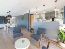 "Twins", apartamento de 3 habitaciones 100 m2 en 2 plantas en el 1° piso. Espacioso y luminoso, con mobiliario de buen gusto y agradable: entrada con WC separado. Salón-comedor abierto con ventanal con chiminea nórdica, mesa de comedor, TV, TV digital y canales internacionales. Cocina abierta (lavavajillas, Estufa de gas, 4 fuegos, hervidor de agua eléctrico, cafetera eléctrica, microondas/grill). Planta superior: 1 dorm. con 1 cama de matrimonio (160 cm, 200 cm de longitud). 1 dorm. con 2 camas (90 cm, 200 cm de longitud). Con Vestidor. Ducha/WC. Suelo de parquet. Jardín, orientación sur. Muebles de terraza. Vista panorámica the dunes. El alojamiento dispone de: lavadora, trona, cuna hasta 2 años, secador de pelo. Internet (Wifi, gratis). Plaza de aparcamiento (vallada, 1 coche) junto a la casa. A tener en cuenta: casa para no fumadores. Entrada privada, detector de humo, extintores, sin ascensor.- Instalaciones