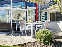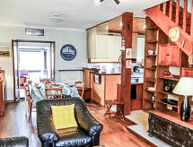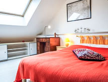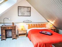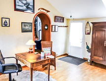 Casa 5 habitaciones 120 m2 en 2 plantas. Con mobiliario confortable y bonito: oficina. Salón-comedor grande. Salón con TV (pantalla plana). Salida al jardín. 1 dorm. con 1 cama de matrimonio (140 cm), ducha/WC y TV (pantalla plana). 1 dorm. con 1 cama de matrimonio (140 cm), DVD. Cocina abierta (4 fogones, horno, lavavajillas, microondas, congelador, cafetera eléctrica). Ducha/WC. Planta superior: 1 dorm., abuhardillado con 1 cama de matrimonio (140 cm, 190 cm de longitud). Jardín 400 m2. El alojamiento dispone de: lavadora, secadora, trona, cuna. Internet (Wifi, gratis). A tener en cuenta: casa para no fumadores. Detector de humo.- Instalaciones