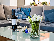 Casa "Ui-tje", bonita. En el barrio de Portichol, lugar soleado, a 1 km del mar, en una calle principal. Privado: jardín 950 m2 (vallado) con césped, piscina (4 x 10 m, Disponible por temporada: 01.Ene. - 31.Dic.) con escalera interior. En el inmueble: calefacción central. Supermercado 100 m, restaurante 200 m, playa de arena "Arenal" 1 km. Grupos de jóvenes sólo bajo petición.Interior