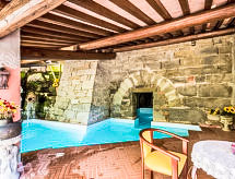 Antiguo Molino del 1600 completamente reestructurado, en zona paisajística. Inmerso en el verde, se asoma a una cascada con torrente. Piscina climatizada cubierta de 30 m2, abierta todo el año, con vistas a la antigua carretera del molino, donde es posible bañarse incluso en los peridodos más frescos. Paseando por el bosque aprox. 1 km se llega a Loro Ciuffenna con todo tipo de servicios. Ideal para hacer trekking y mountainbike. Bajo petición: instructor de tiro con arco y de técnicas de relajación. La valoración media de la tranquilidad depende del rumor de la cascada. Molino "Il Mulinaccio". 3 apartamentos en la propiedad. A 1 km del centro de Loro Ciuffenna, a 28 km del centro de Arezzo, a 30 km del centro de Siena. Comunitario: terreno (vallado), jardín, piscina cubierta climatizada (50 - 135 cm de profundidad, Disponible por temporada: 01.Ene. - 31.Dic.) con escalera interior. Piscina con forma irregular. Muebles de jardín, barbacoa. En el inmueble: Wifi, calefacción central, lavadora (uso comunitario), posibilidad de pagar la calefacción en plaza, calefacción disponible desde el 01.11. al 15.04.. Cambio de sábanas 1 vez por semana. Posibilidad de limpieza (extra). Posibilidad de cocinero (extra). Aparcamiento junto a la casa. Tienda de comestibles 1.5 km, restaurante 2 km, estación de tren "Montevarchi" 12 km. Tenis 12 km. Atracciones en los alrededores: Castelfranco di Sopra 19 km, Reggello 24 km, Arezzo 31 km, Abbazia di Vallombrosa 35 km, Bibbiena, Greve in Chianti 41 km, Monte San Savino 50 km.Interior