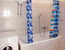Casa 3 habitaciones 95 m2 en 2 plantas. Con mobiliario funcional y agradable: salón-comedor con 1 sofá-cama (110 cm, 190 cm de longitud), TV satélite y aire acondicionado. Cocina abierta (4 fogones, horno, tostadora, hervidor de agua eléctrico, cafetera eléctrica). Baño/WC. En planta inferior: 1 dorm. con 1 cama y 1 cama de matrimonio. Salida al balcón. 1 dorm. con 1 cama de matrimonio. Suelo de parquet. Balcón pequeño. El alojamiento dispone de: Internet (Wifi, gratis). Plaza de aparcamiento junto a la casa. Permitido máximo 1 mascota / perro.- Instalaciones